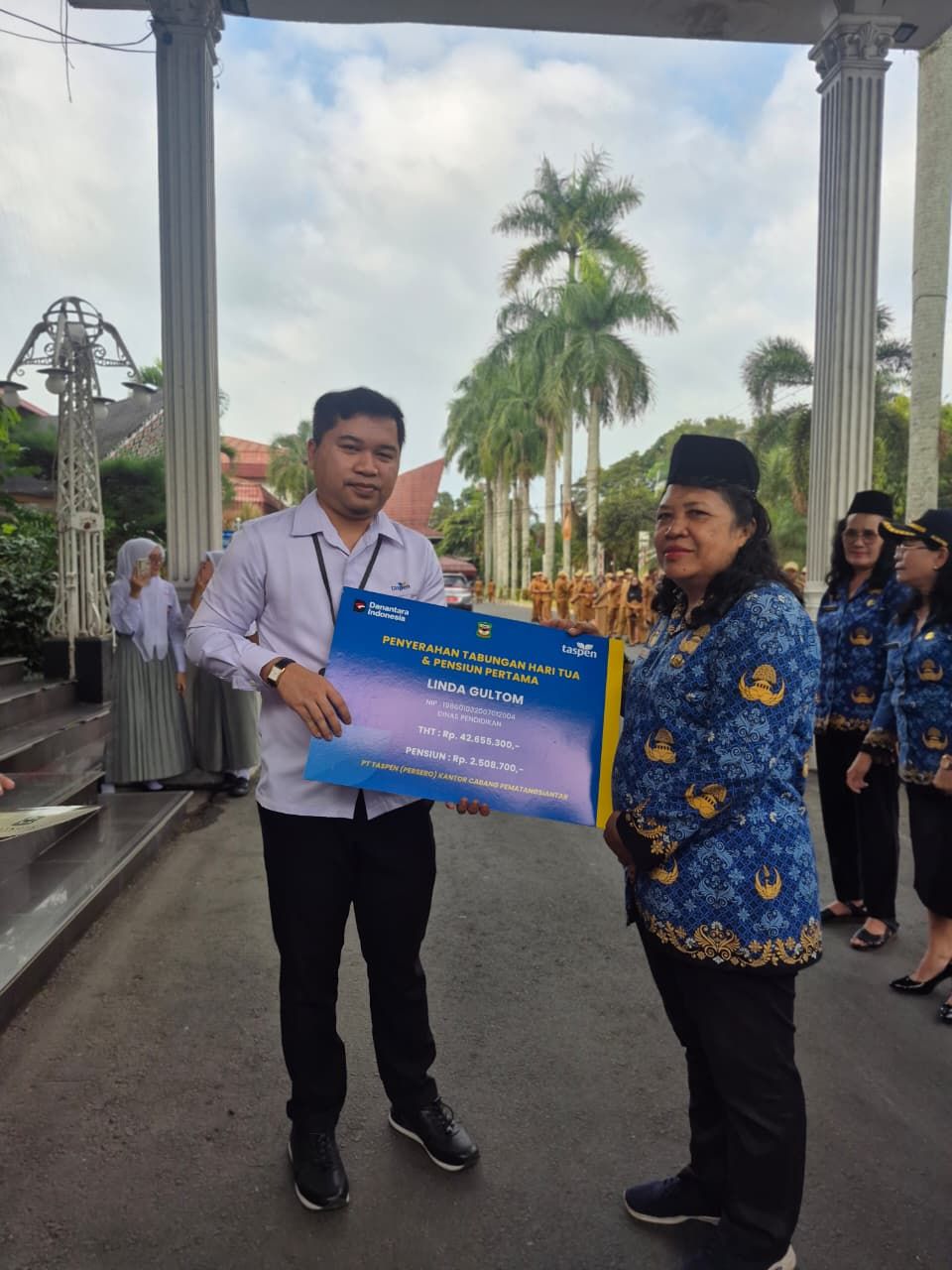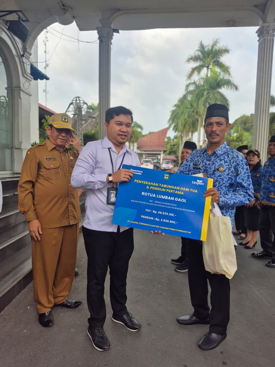 PT. Taspen (Persero) Cabang Pematangsiantar juga menyerahkan secara simbolis Tabungan Hari Tua dan Pensiun Pertama kepada Bapak/Ibu PNS yang memperoleh nilai Tabungan tertinggi pada periode ini.